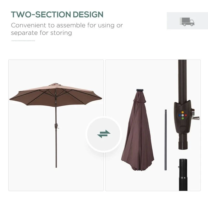 Outsunny Umbrella Parasol 24 Solar LED – Brown/Coffee – 840-125CF