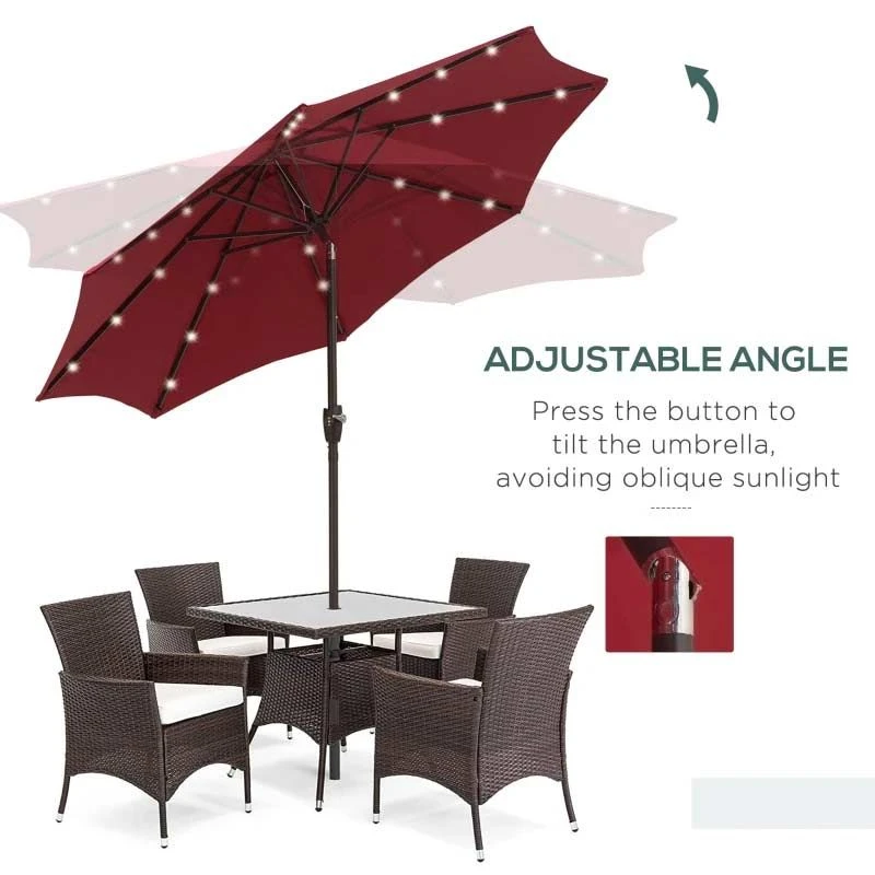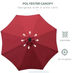 Outsunny Umbrella Parasol 24 Solar LED – Wine Red – 840-125WR
