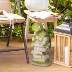 Add a touch of humor and visual appeal to your garden and outdoor areas with the eye-catching Outsunny Tortoise outdoor garden Ornament. This charming ornament not only brings a decorative touch to your space but also offers a unique safety feature with its LED light eyes. Powered by solar energy, the LED eyes charge during the day and illuminate your garden at night, creating a fun and captivating effect. Made of tough magnesium oxide ceramic and coated with weather-resistant paint, this ornament is built to withstand the elements and can be enjoyed all year round. The paint coating ensures that it won’t fade, maintaining its vibrant appearance over time.