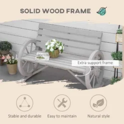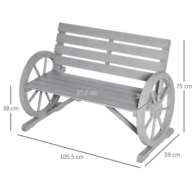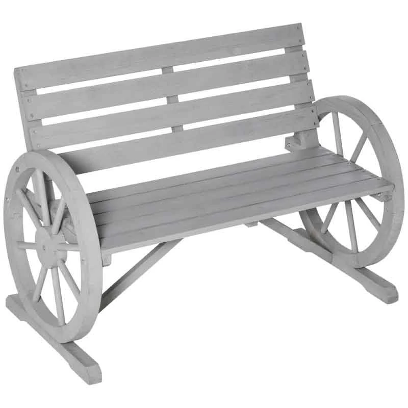 Outsunny Wooden Wagon Wheel 2-Seater Garden Bench-Grey-84B-183CG