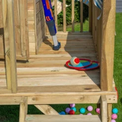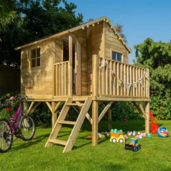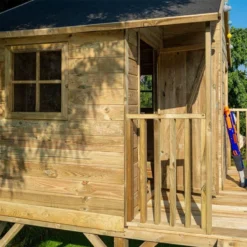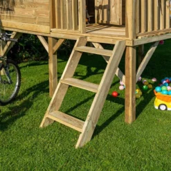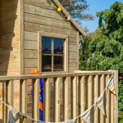 Design an adventurous hangout for your children to enjoy with the Rowlinson High View Playhouse, creating a perfect space so they can enjoy themselves at all times when outdoors whether with family and friends or by themselves. The playhouse can be added to any space and decorated to fit the look you want to achieve, with many features the high view playhouse matches the needs of your space complementing your finish. The Rowlinson High View has a natural timber finish and is pressure treated against rot meaning the play area has strength and longevity.