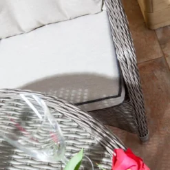 Bring a relaxing dining space into your garden with the addition of the Rowlinson Prestbury Bistro Set, creating a traditional feature with the waterproof rattan material enhancing the design of your patio. This Prestbury Bistro set is ideal for more intimate dining for two or for smaller spaces. It comes complete with the back and seat cushions, two chairs and a glass topped table for resting your drinks, food or book on whilst you enjoy the weather.